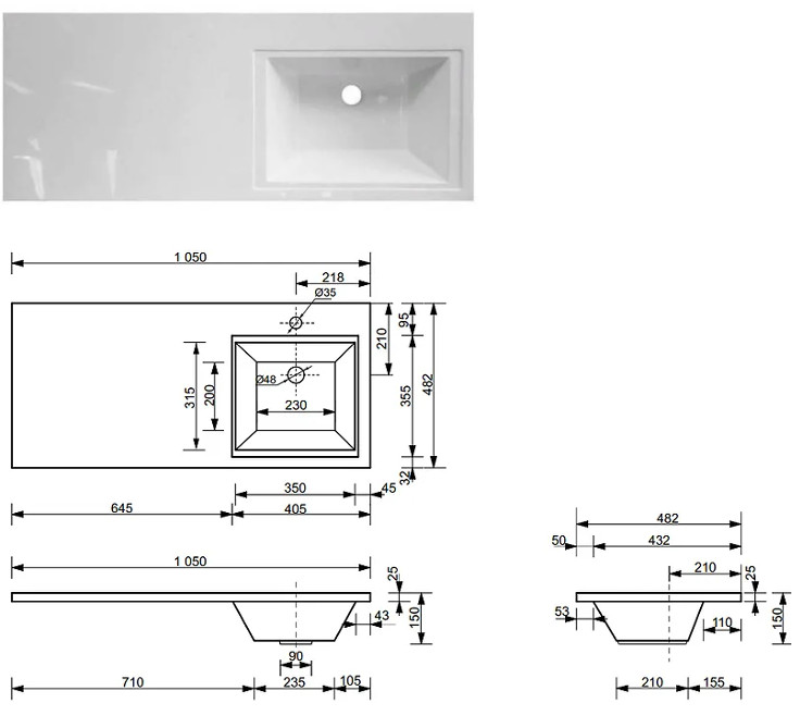 - Тумба с раковиной Dallas Luxe 1000 напольная 3 ящика правая