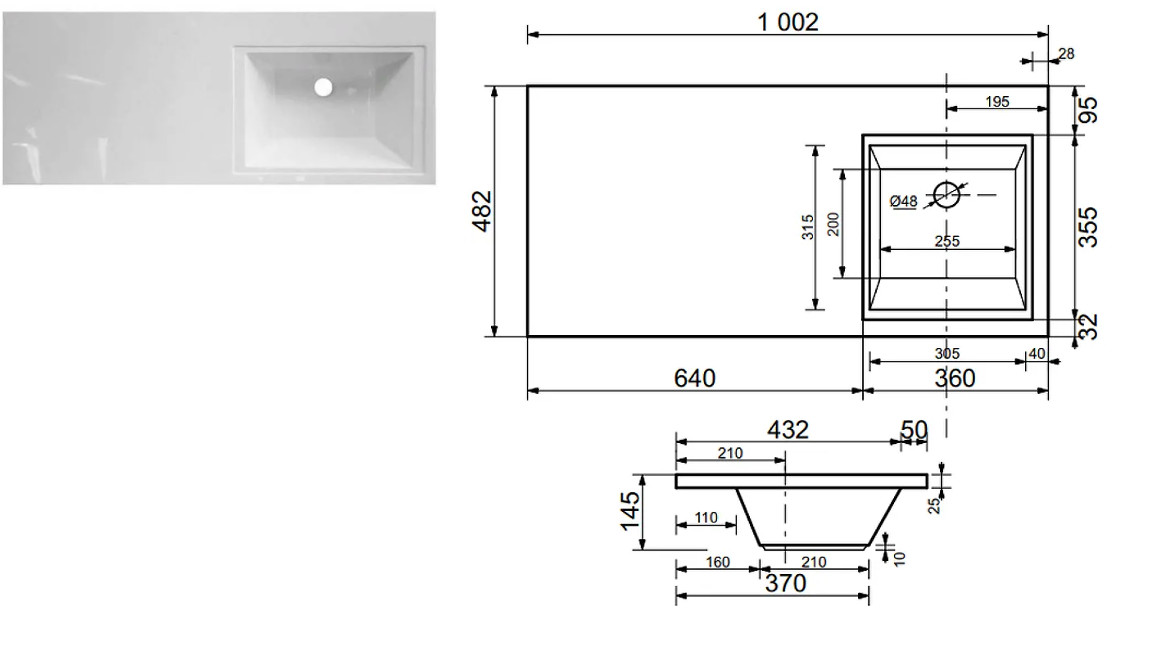- Тумба с раковиной Dallas Luxe 1000 навесная 2 ящика правая