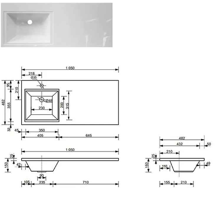 - Тумба с раковиной Dallas Luxe 1050 напольная 3 ящика левая