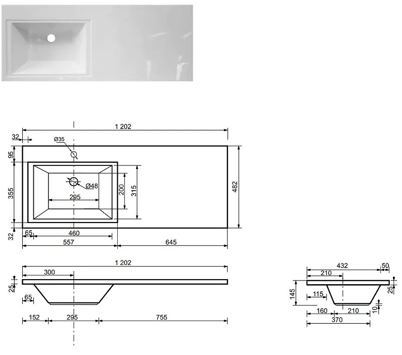 - Тумба с раковиной Dallas Luxe 1200 навесная 2 ящика левая