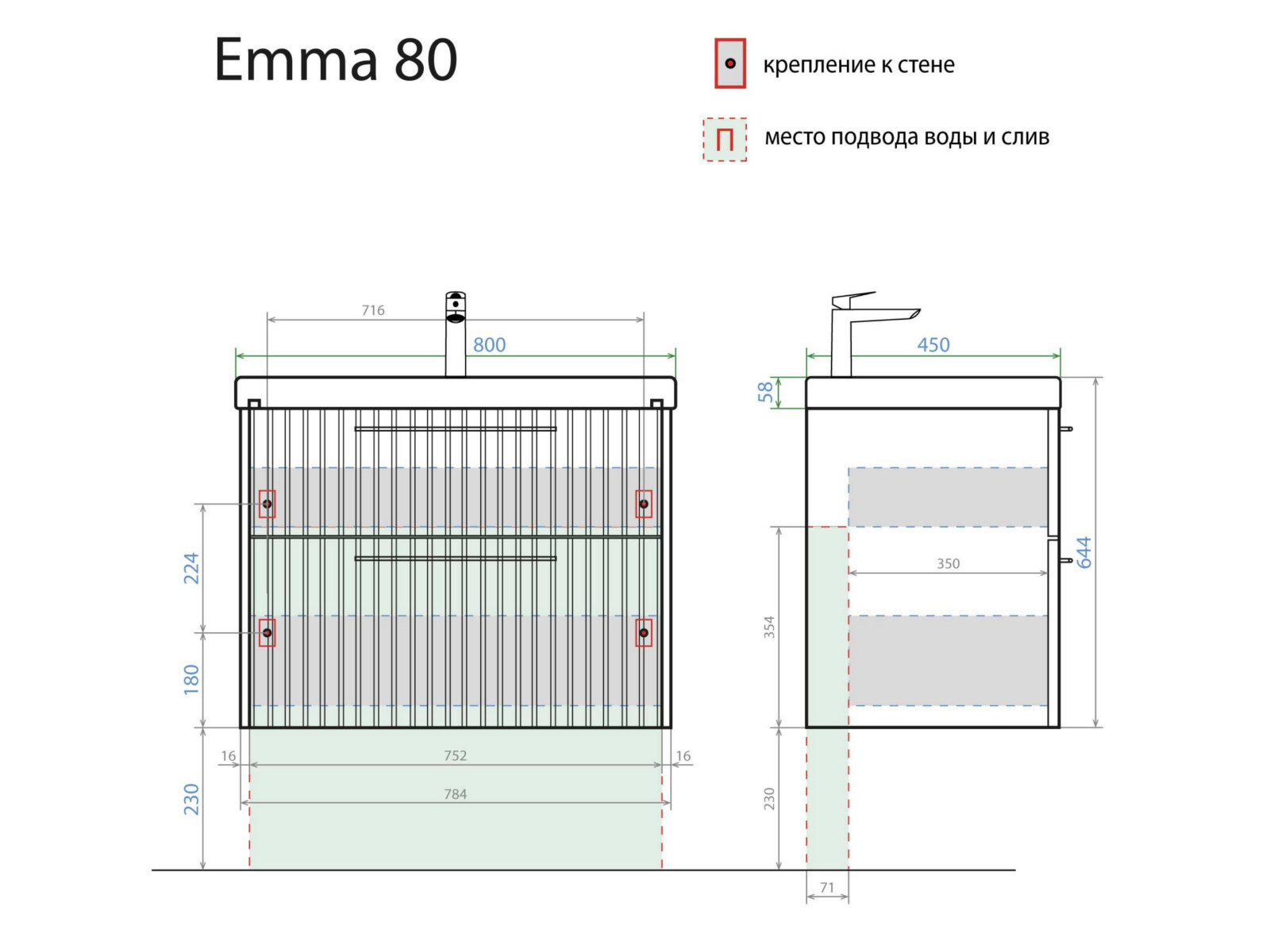 - Тумба с раковиной Emma 80 Умывальник Moduo 80