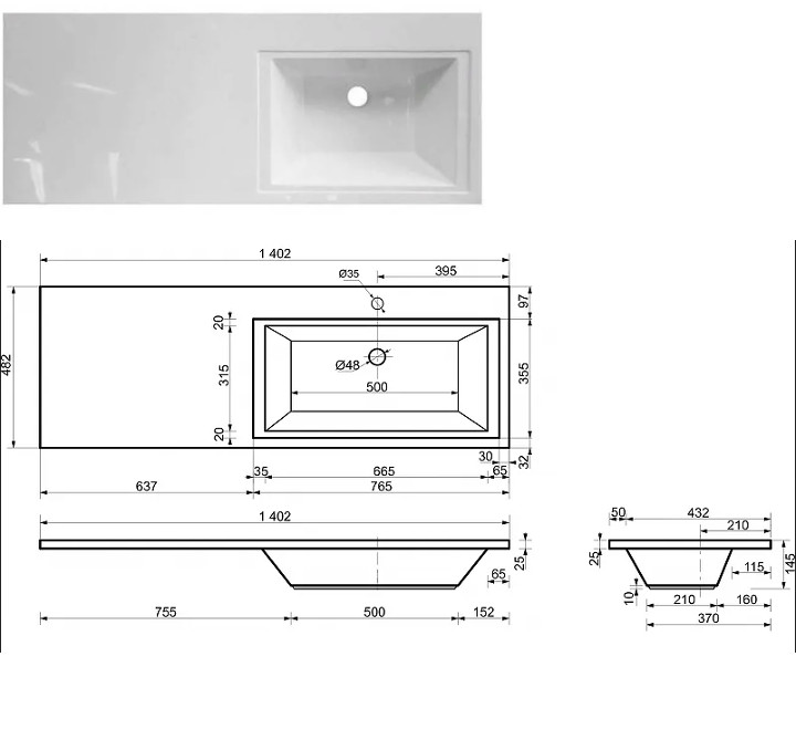 - Тумба с раковиной справа Dallas Luxe 1400 навесная 1 длинный ящик