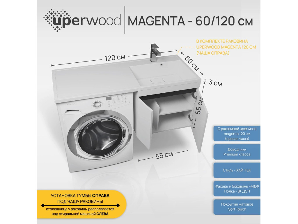- Тумба с раковиной Uperwood Magenta 60-120 см подвесная белая/графит с дверцами правая