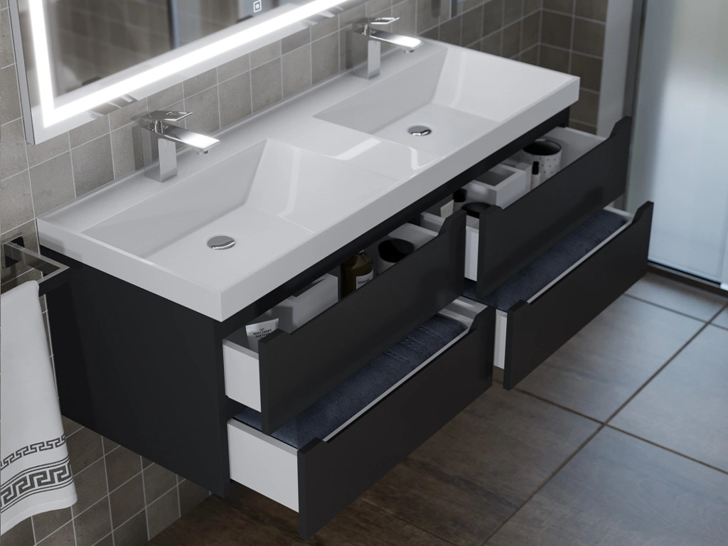 - Тумба с раковиной Uperwood Tanos 120 см подвесная двойная черная