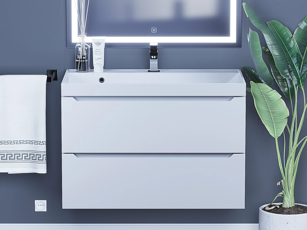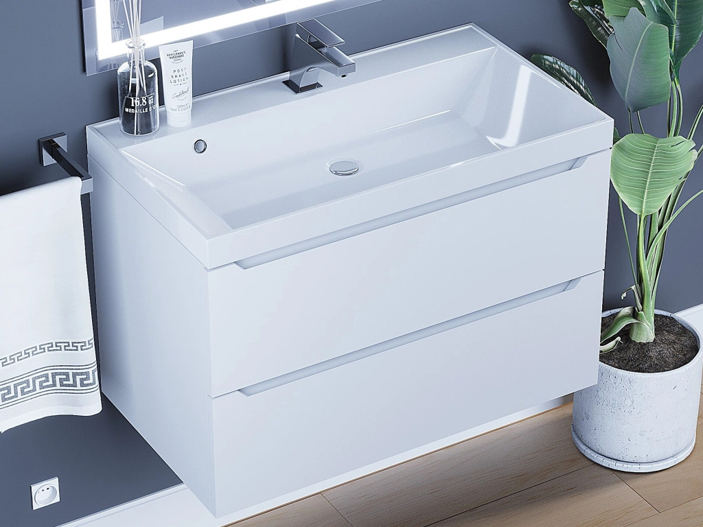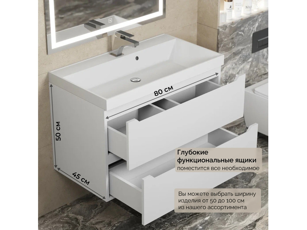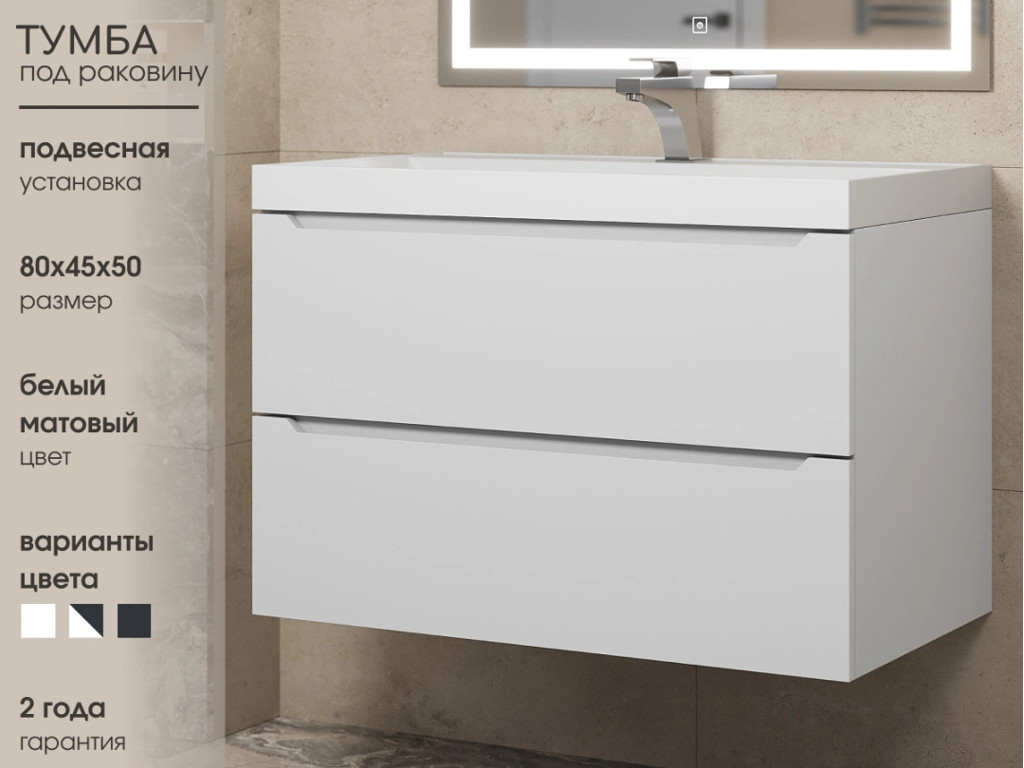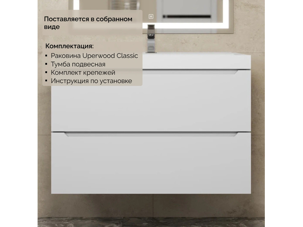 - Тумба с раковиной Uperwood Tanos матовая белая 80 см