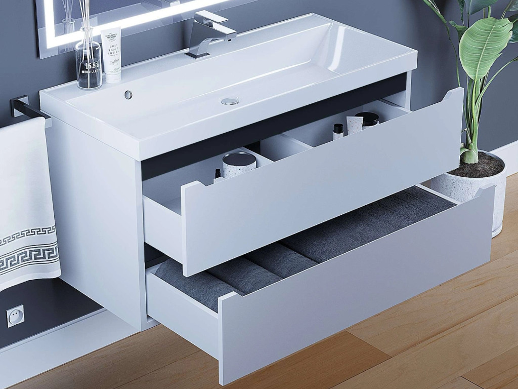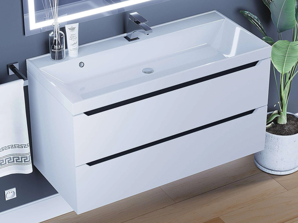 - Тумба с раковиной Uperwood Tanos матовая белая/графит 100 см