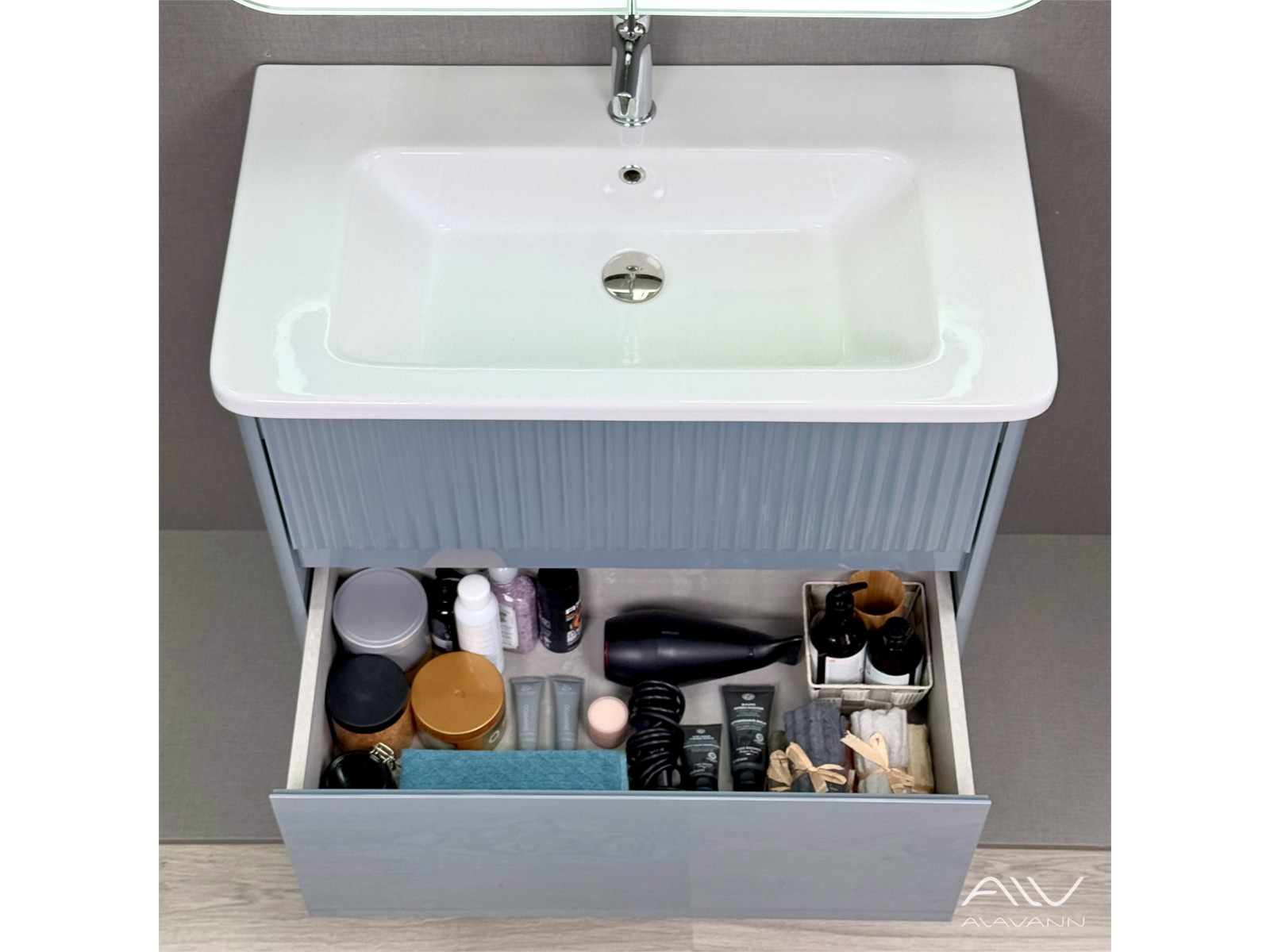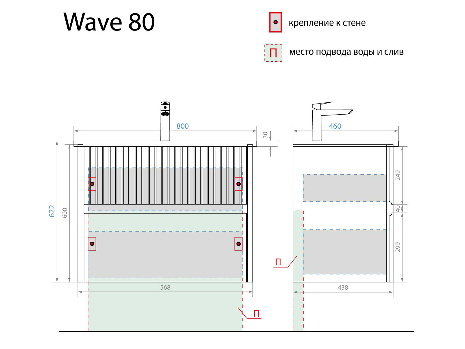 - Тумба с раковиной Wave 80 голубой деним