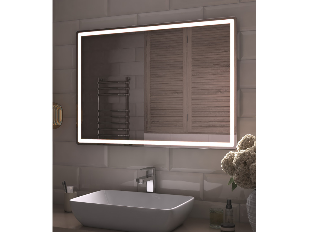 Подсветка фронтальная по периметру, с цветовой температурой 5000К – нейтральный белый, управление подсветкой бесконтактный выключатель «на взмах»