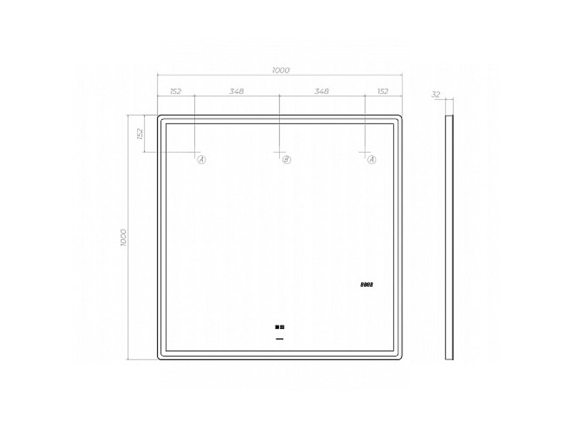 светодиодная подсветка по периметру; сенсорное управление; встроенные часы;функция антизапотевания с таймером отключения