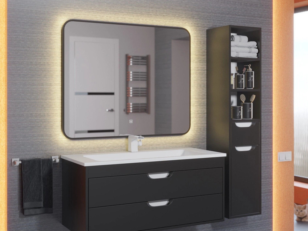 Зеркало Uperwood Modul черное теплая подсветка 65х80 см
