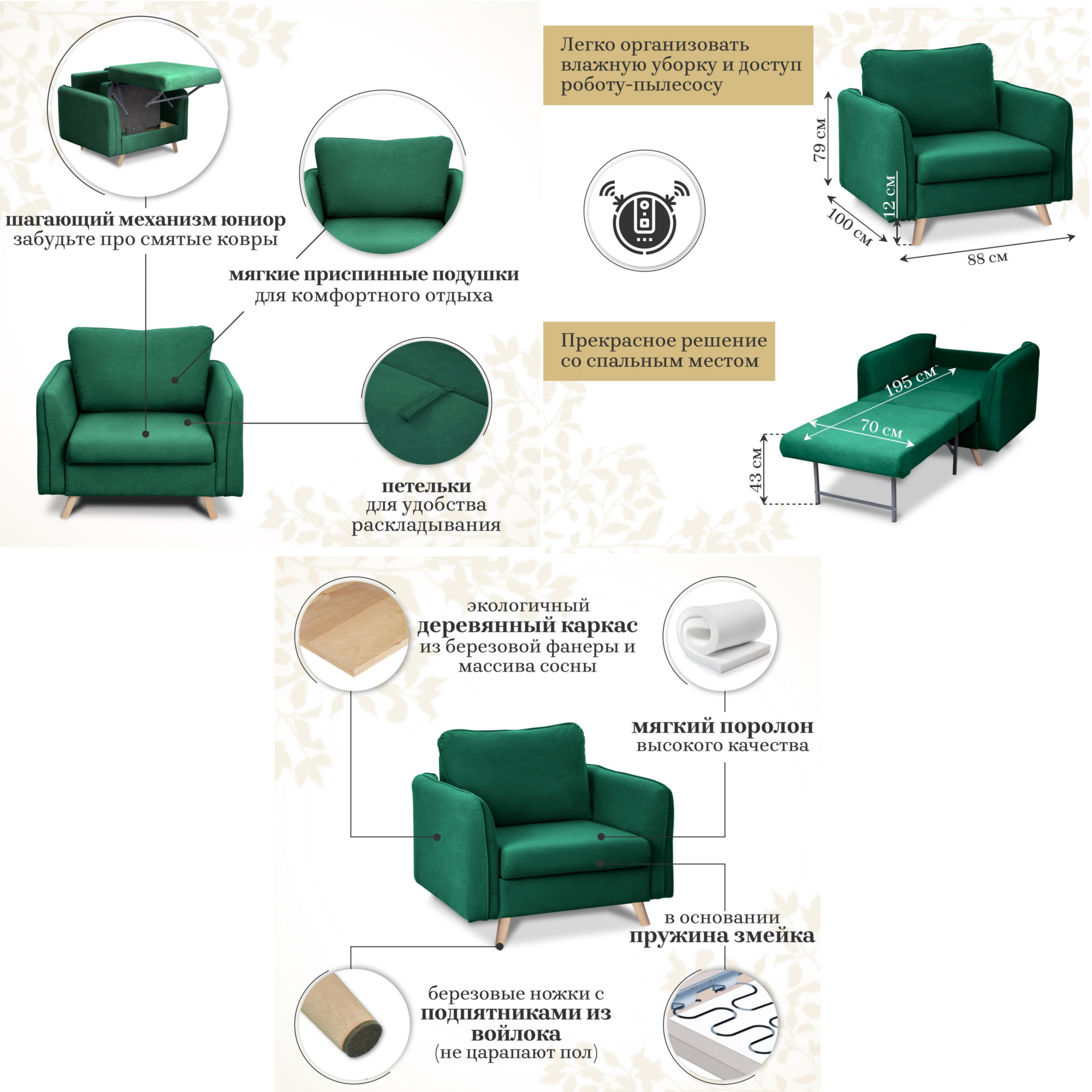 - Спальное место: 700х1950 мм