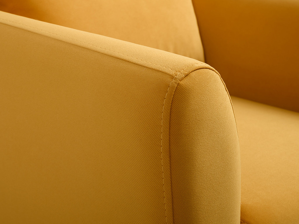 Декоративная утяжка на спинке кресла, декоративная подушка в цвете кресла, металлические опоры переходят в декоративный элемент подлокотника