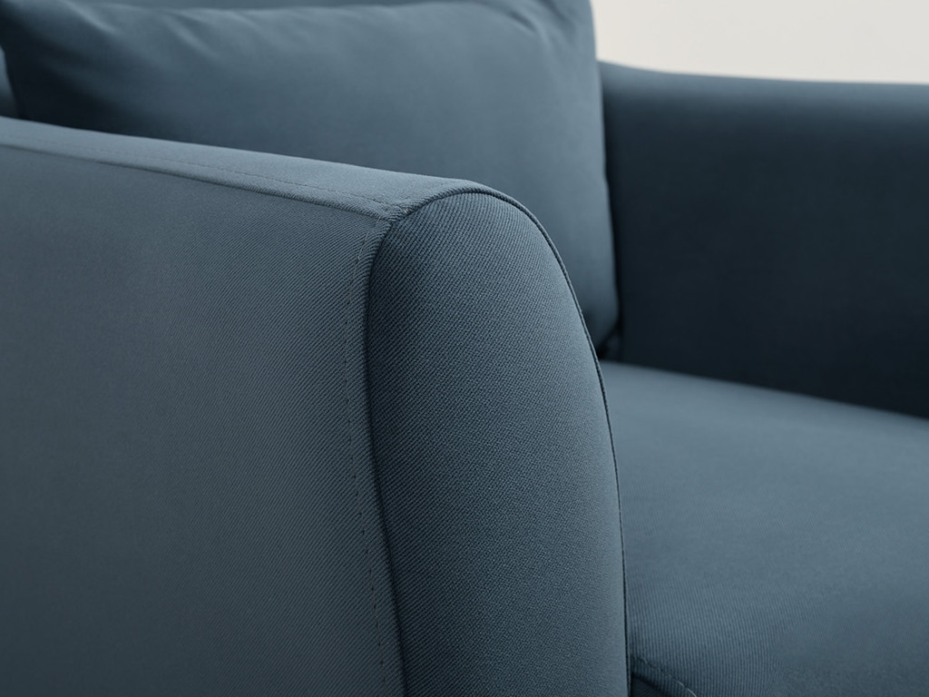 Декоративная утяжка на спинке кресла, декоративная подушка в цвете кресла, металлические опоры переходят в декоративный элемент подлокотника
