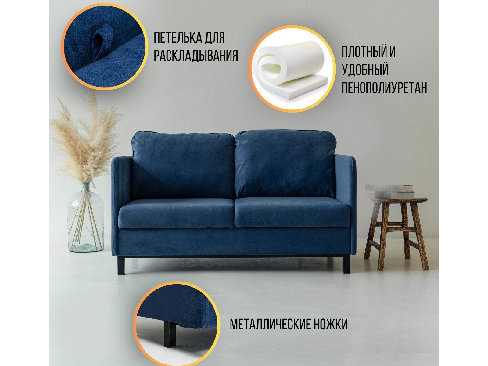Диван 5555 ткань Вивальди 14 синий