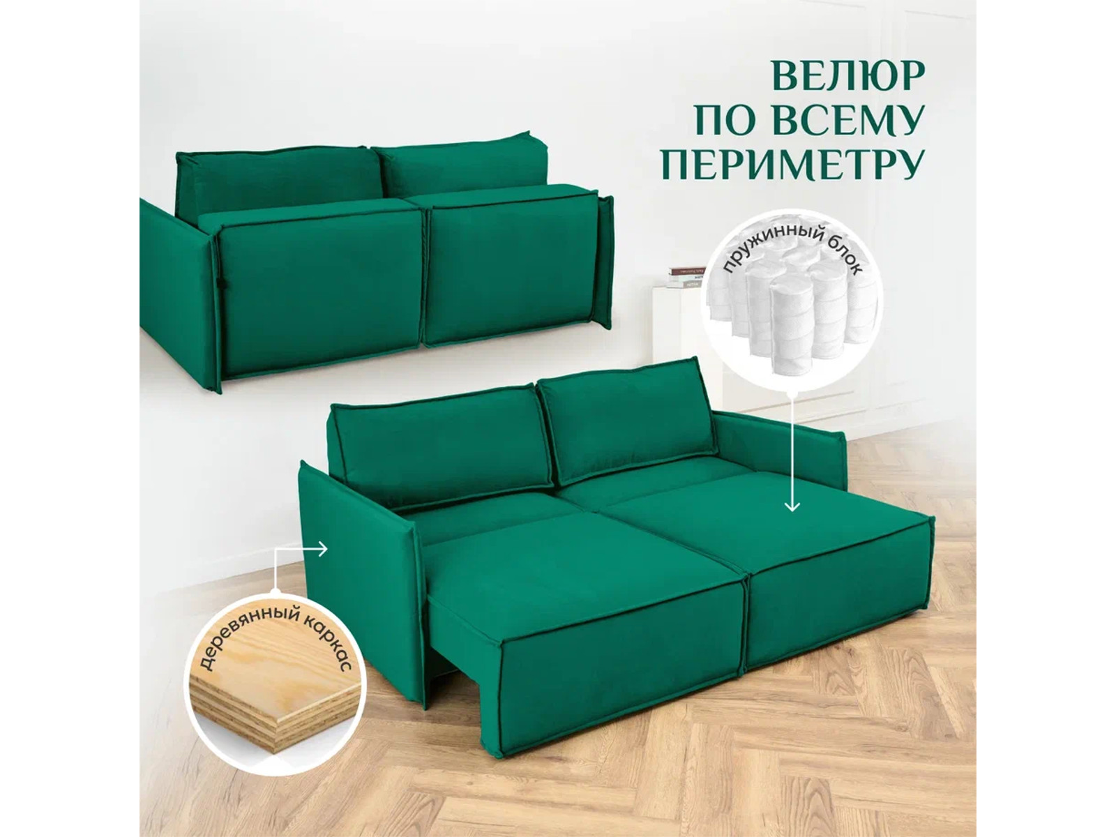 - Диван 9999 ткань Вивальди 11 изумрудный