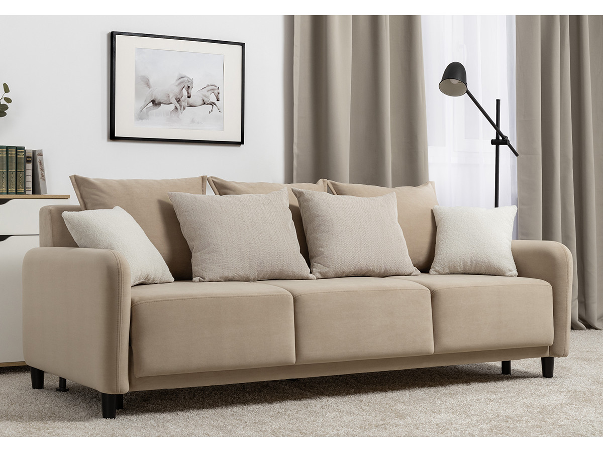 Декор: В комплекте 2 двусторонние декоративные подушки и 2 декоративные думки. Задняя спинка в ткани основы. Декоративные отделочные строчки по боковинам и сиденью