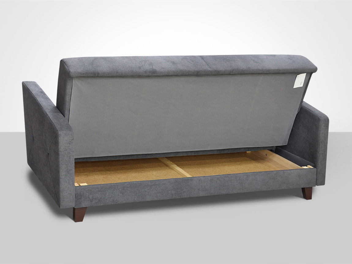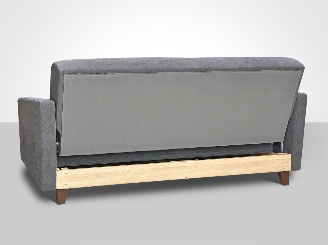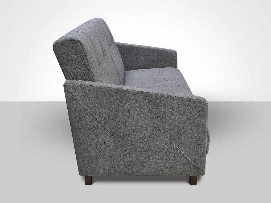 Минималистичный дизайн, узкие подлокотники с выбором цвета накладок из МДФ,контрастная отстрочка и утяжки-пуговицы.