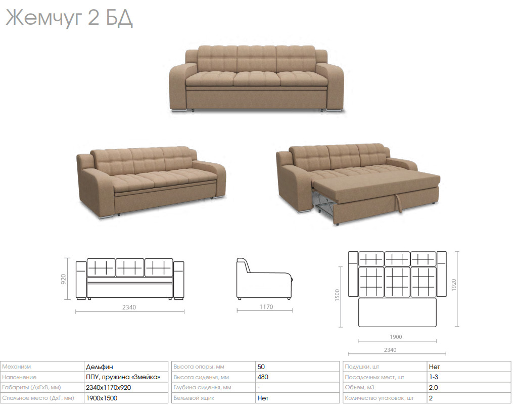 - Диван Жемчуг 2 БД