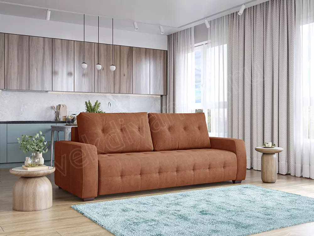 Наполнитель: в основании спального места независимый пружинный блок с дополнительным многослойным покрытием: термовойлок, высокоэластичный пенополиуретан, синтепон; подушки спинки имеют внутренний чехол на синтепоне, наполнитель комбинированный, гипоаллергенный пух «комфорель» с пенополиуретановой крошкой.