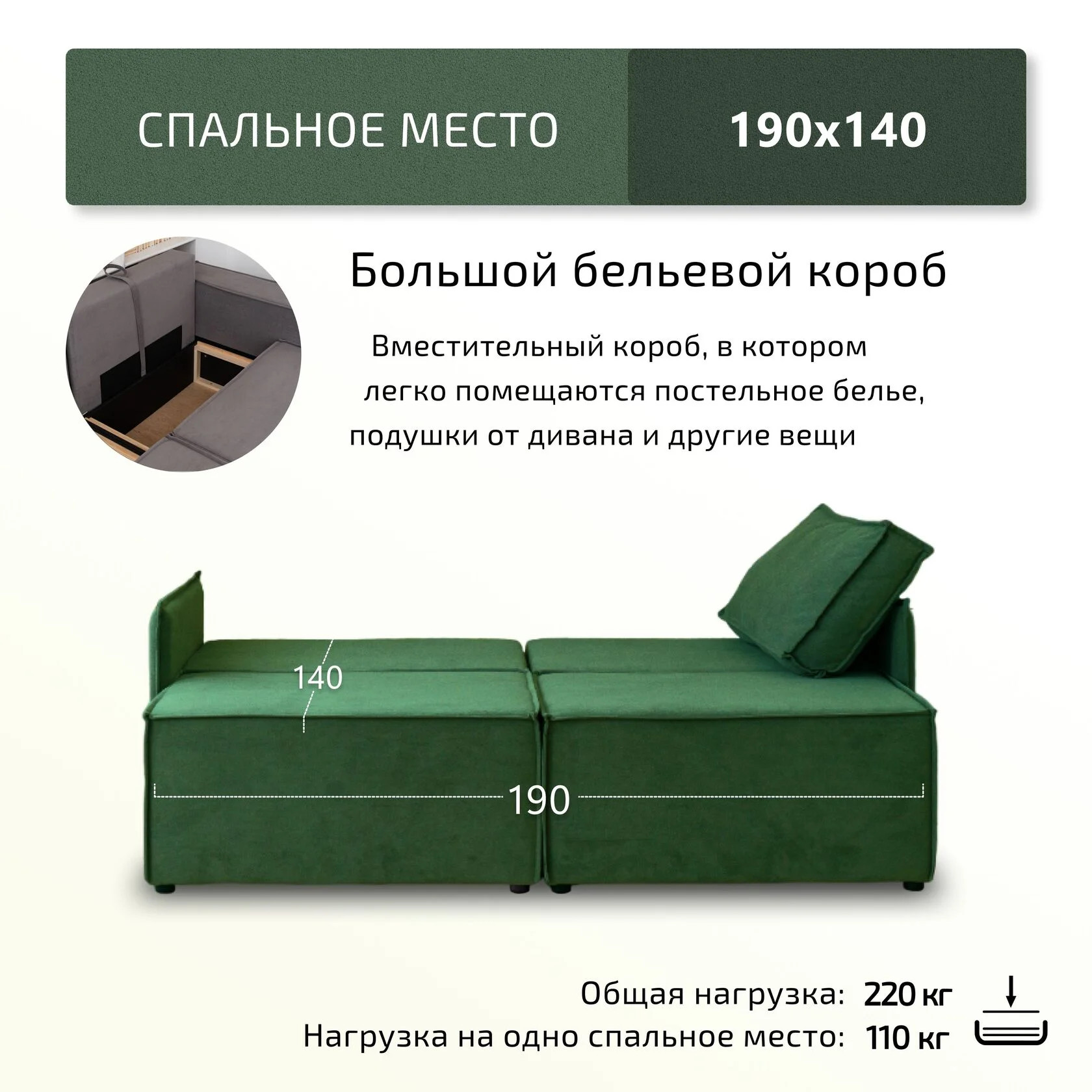 Спальное место, мм: 1400х1900 мм