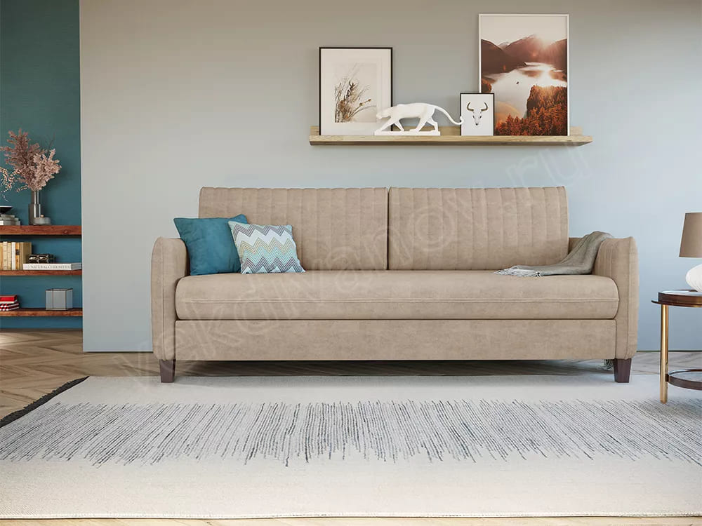 Диван Рэй Клетка 2000х2000 с прямыми подлокотниками бежевый велюр