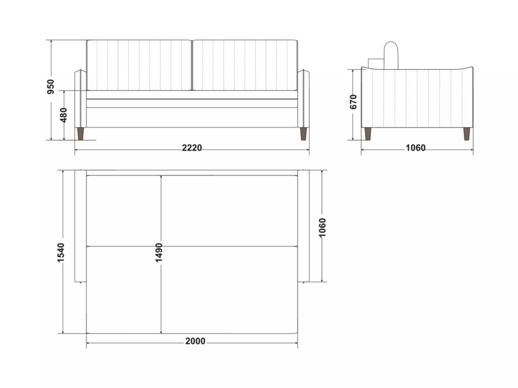 Каркас: выполнен из древесины хвойных пород, фанеры лиственных пород, лам. ДСП и лам. ДВП. В диване короб из ЛДСП. Опоры высота 120 мм