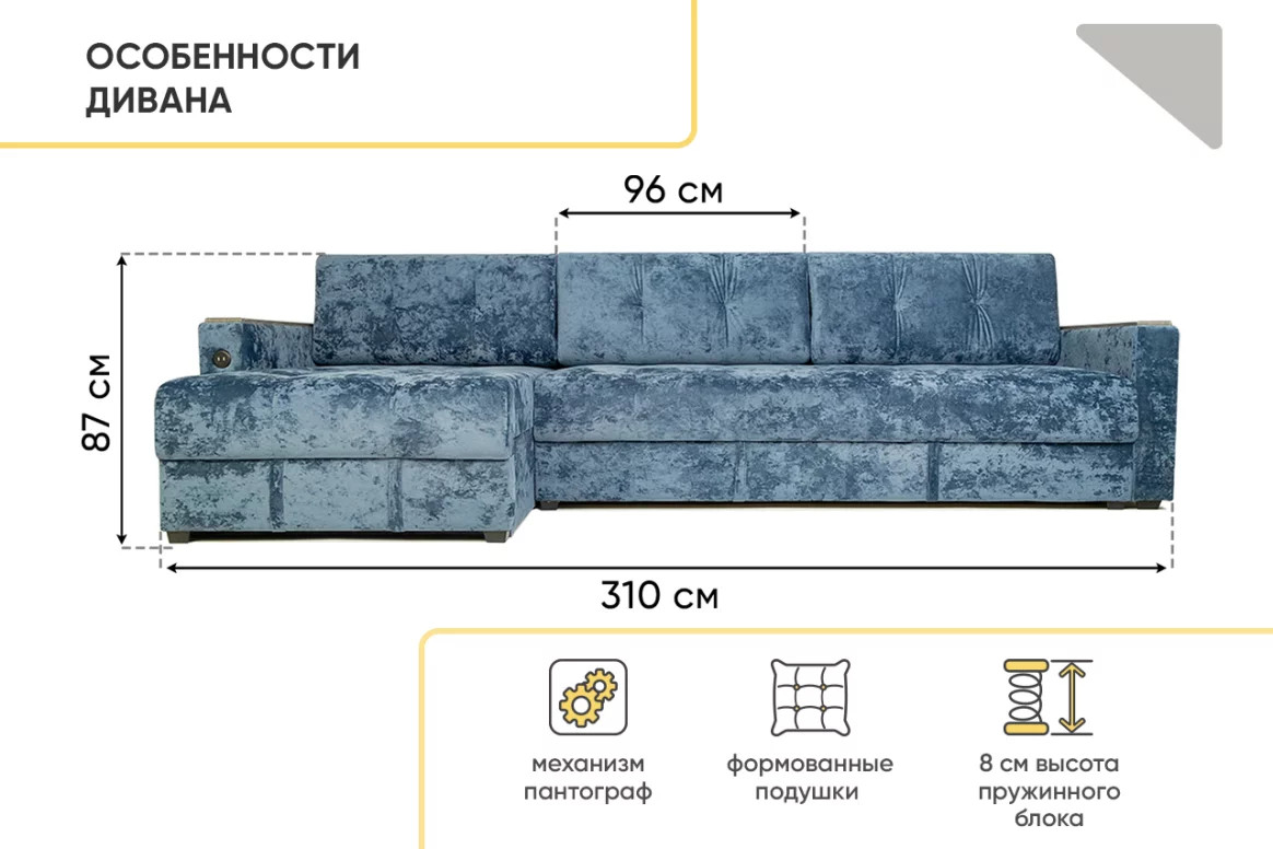 - Диван eгловой Тургояк c USB розеткой Темно-синий Ocean 978