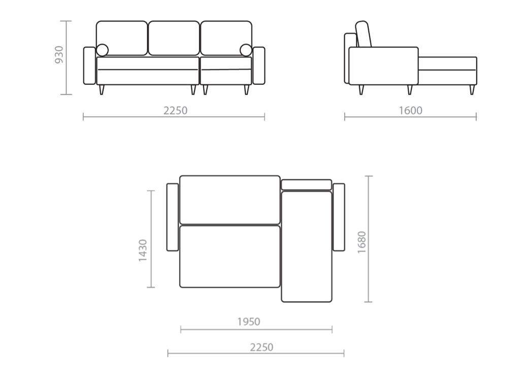 - Длина спального места, мм 1950