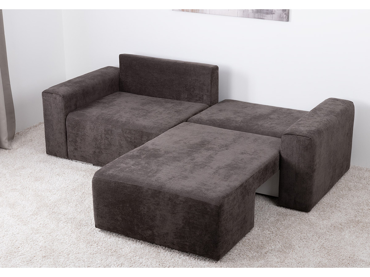«Компоновка 1» состоит из: оттоманки арт. ТО, дивана арт. ТД, широкого подлокотника арт. ТБ, широкого подлокотника с ящиком арт. ТБ, двух приспинных подушек и двух декоративных подушек.