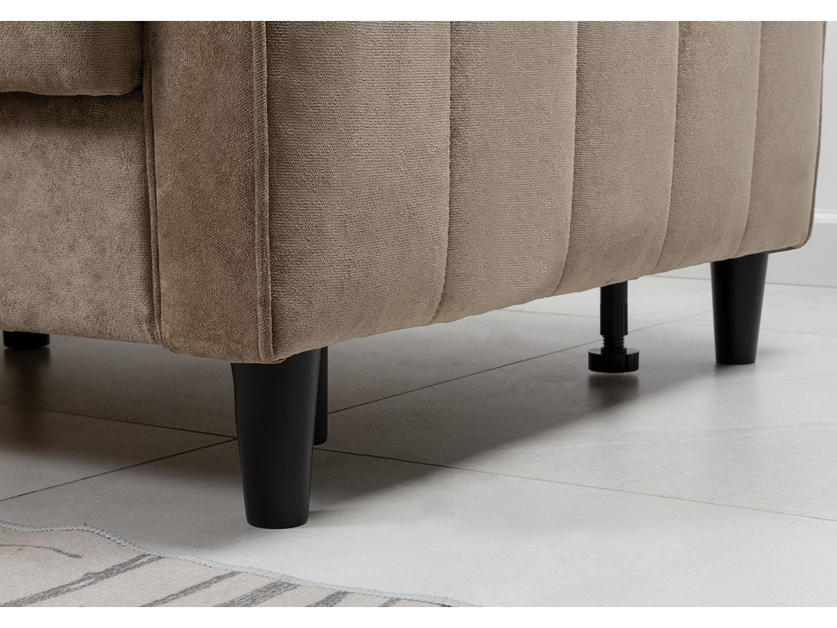 Подушки имеют трапециевидную форму, с утолщением к низу для комфорта посадки. Кант по всему периметру подушек, декоративные утяжки металлическими пуговицами, вертикальная стежка.