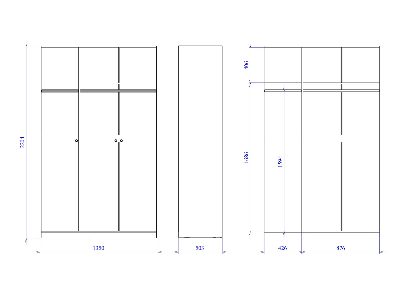 - Шкаф 3 дверный с одним зеркалом Фрея
