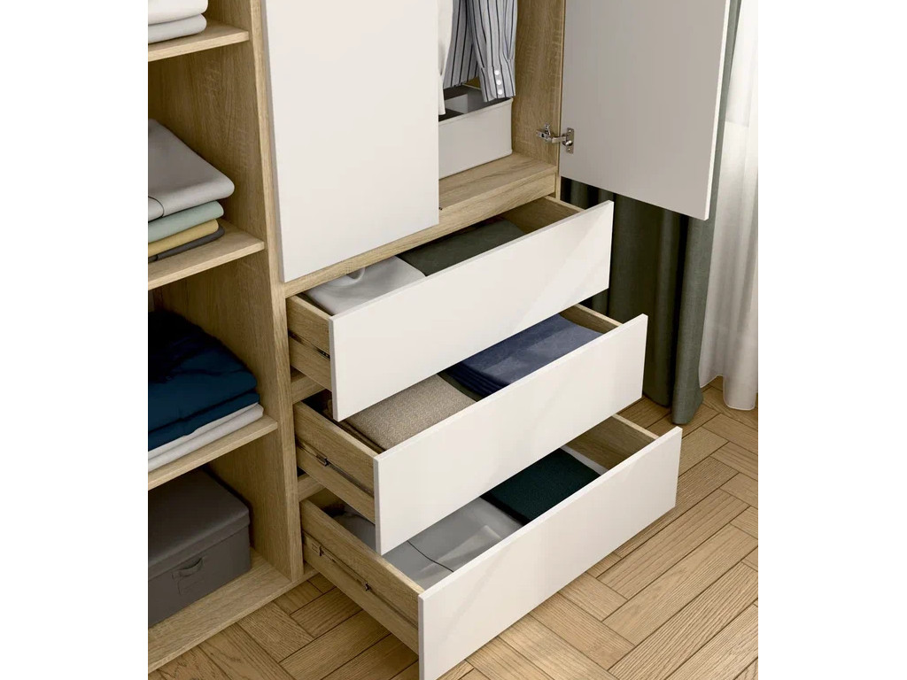 - Шкаф 3-хстворчатый с 3-мя ящиками Прайм сонома/белый