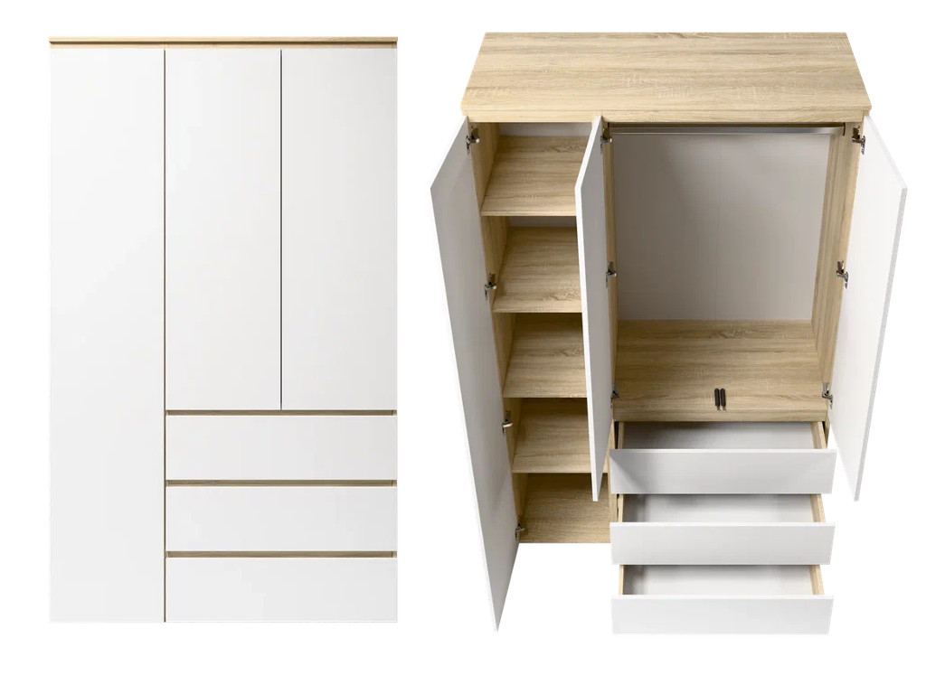 Шкаф 3-хстворчатый с 3-мя ящиками Прайм сонома/белый