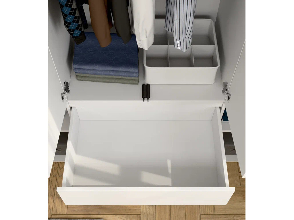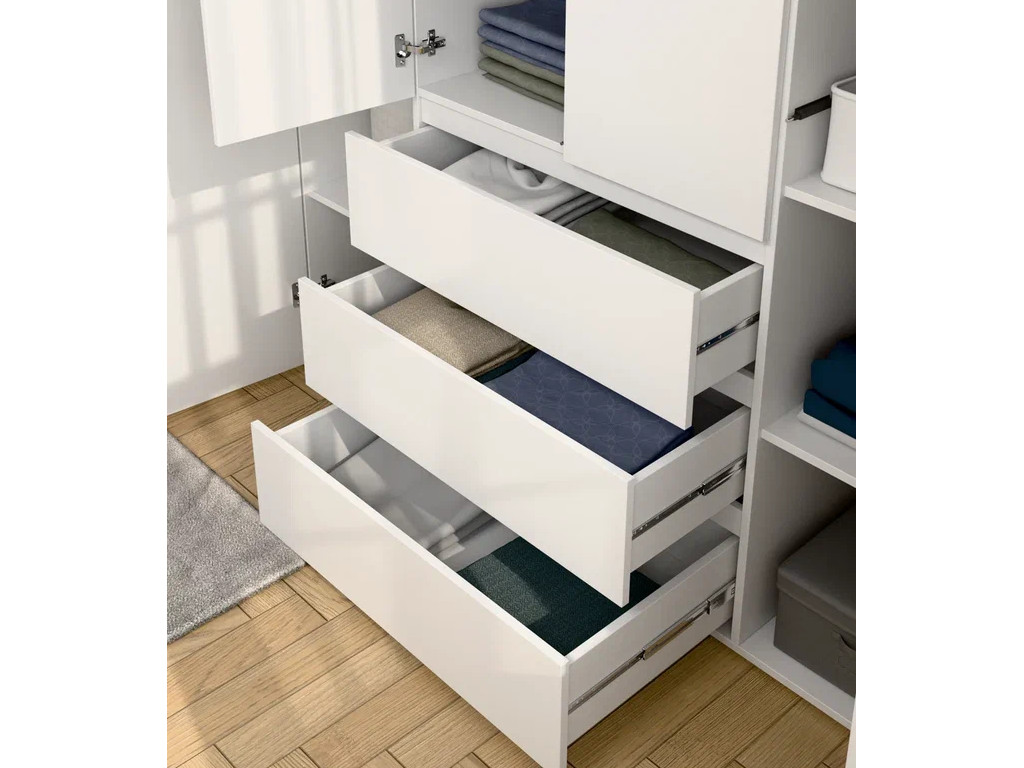 - Шкаф 4-хстворчатый с 3-мя ящиками Прайм белый