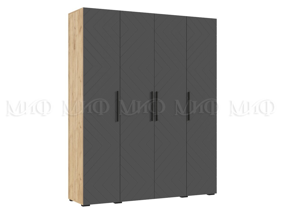 - Шкаф четырехстворчатый (1800) Флэш Браш Графит, Дуб Крафт