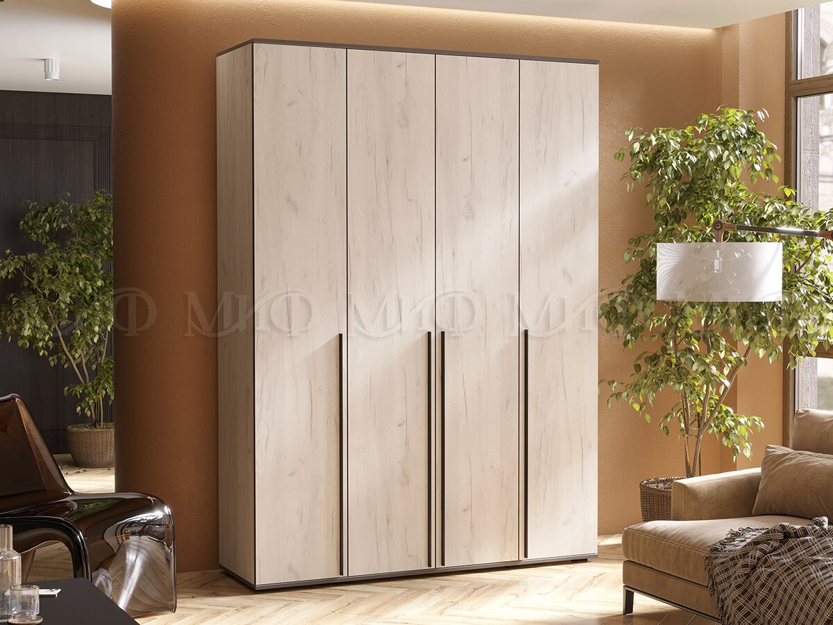 - Шкаф четырехстворчатый Норд 1600 дуб крафт белый МГ