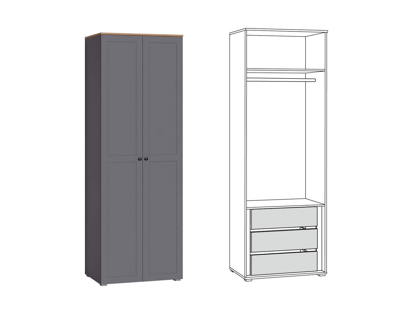 - Шкаф для одежды 13.336.02 Остин Серый Графит