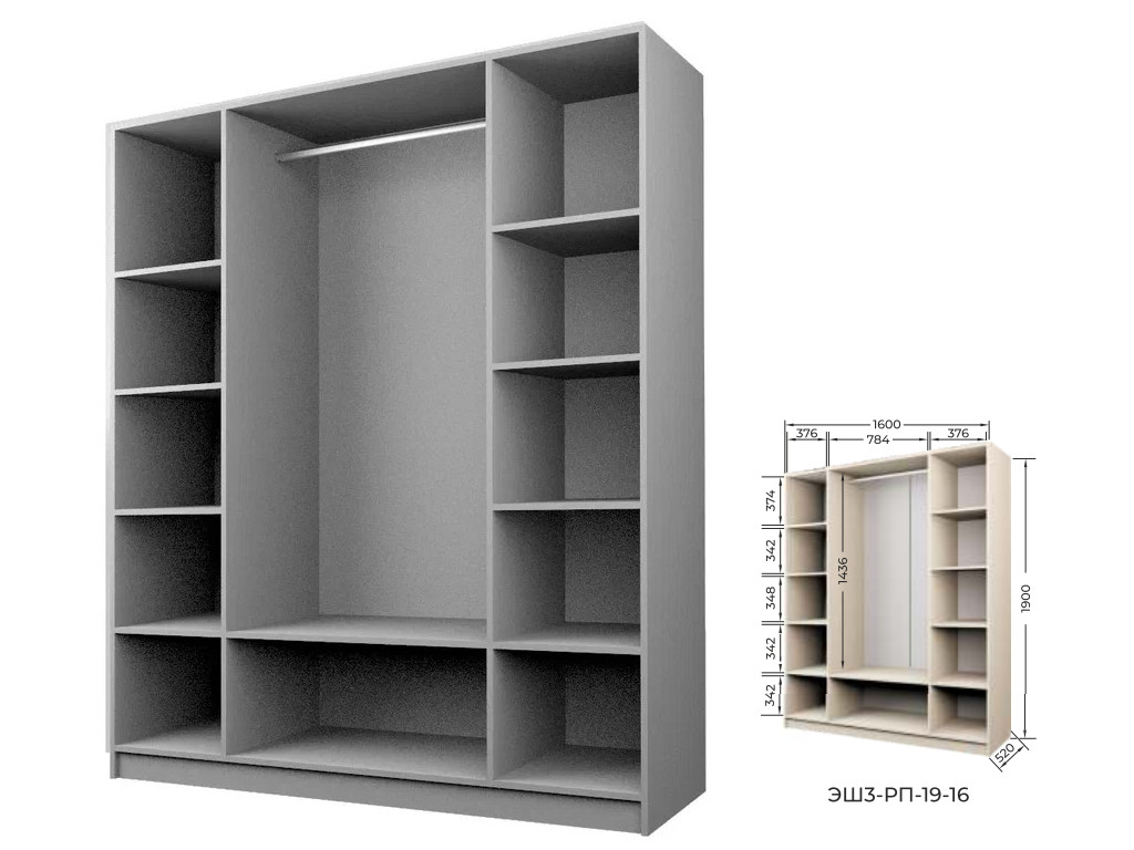 Комплект: ЭШ3-РП-19-16, Шкаф для Одежды + два ЗС-19,Зеркало для шкафов ЭШ 1900 мм