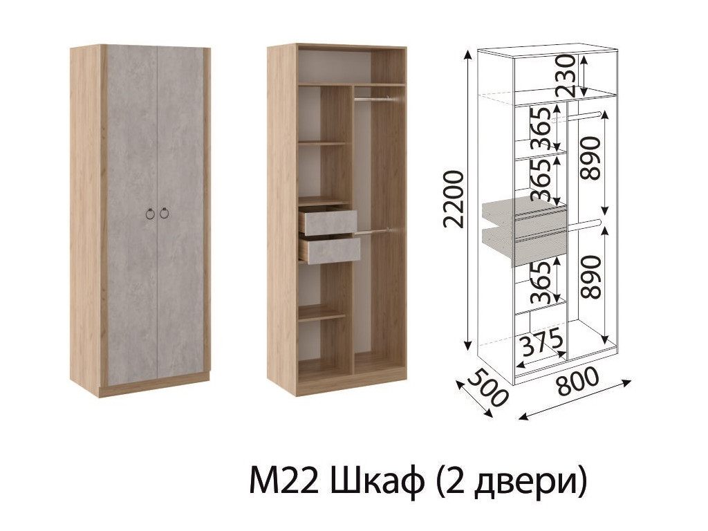 - Шкаф двухстворчатый Глэдис М22 Дуб золото
