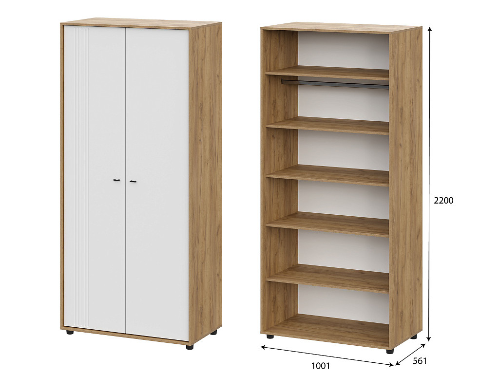 - Шкаф двухстворчатый Милан Дуб Золотой/Белый Матовый
