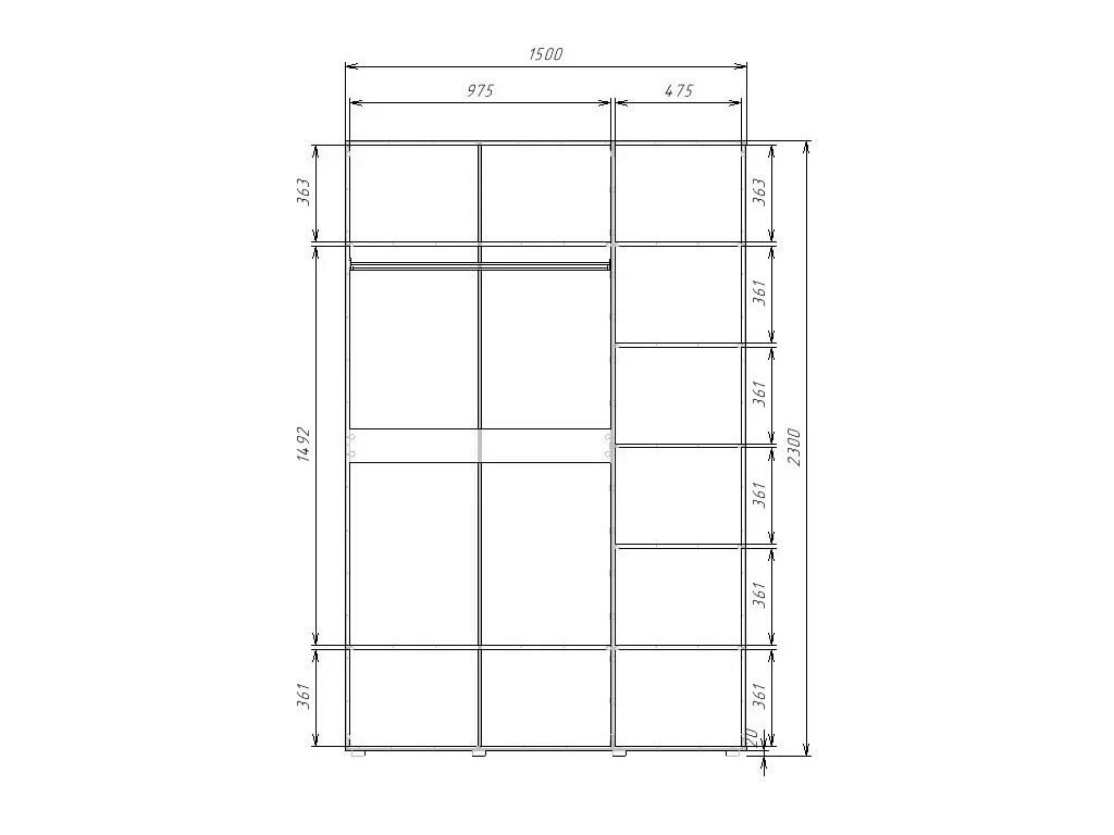 - Шкаф Гранд ГШК/1-23-15-111 (двери тип 1) с одним зеркалом