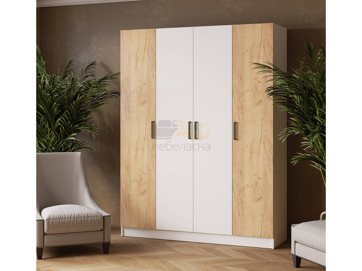 - Шкаф комбинированный Ларс 1600 без зеркал белый/дуб крафт золотой
