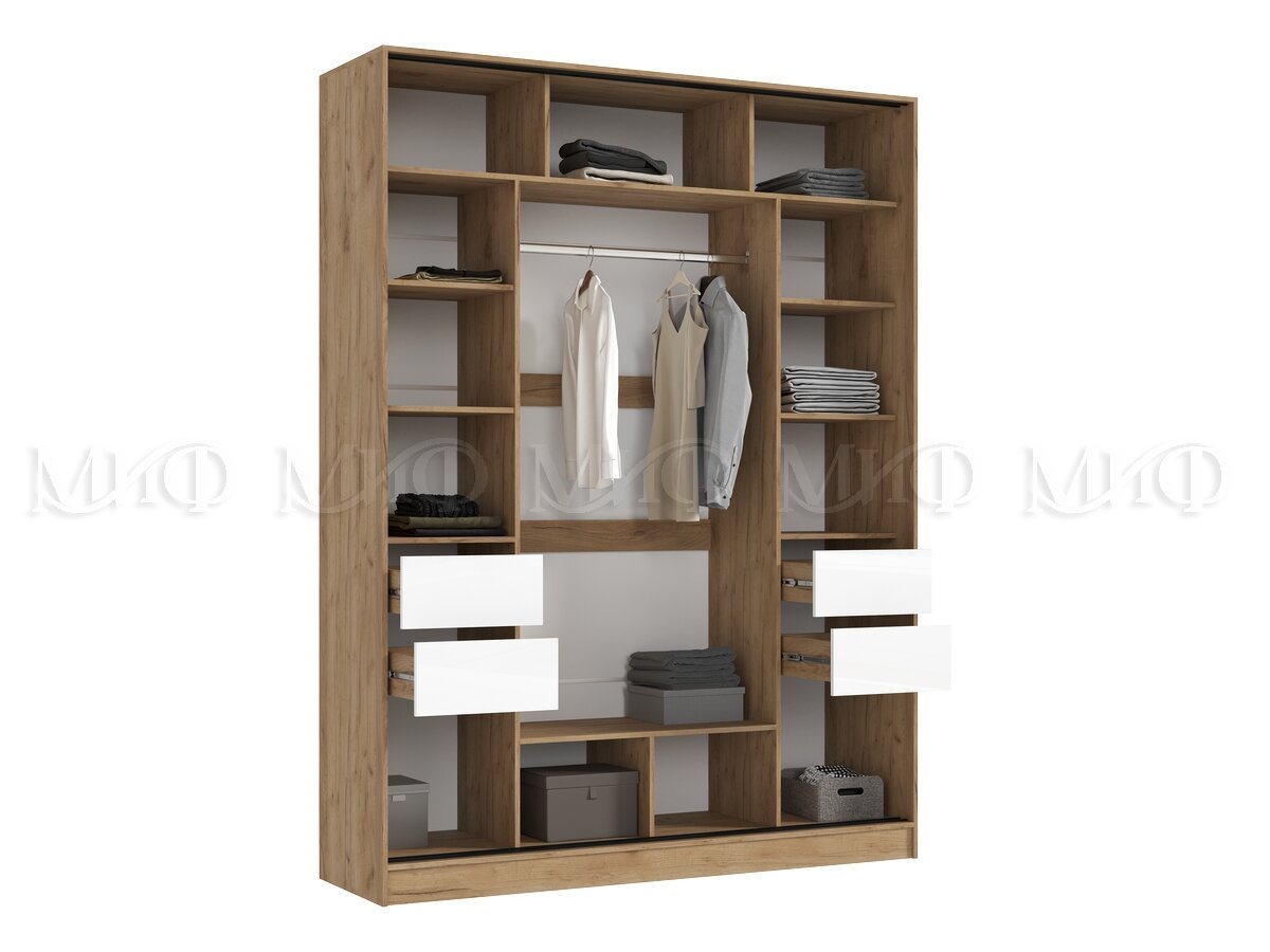 - Шкаф-купе 1800 Роджина Дуб крафт/Белый глянец