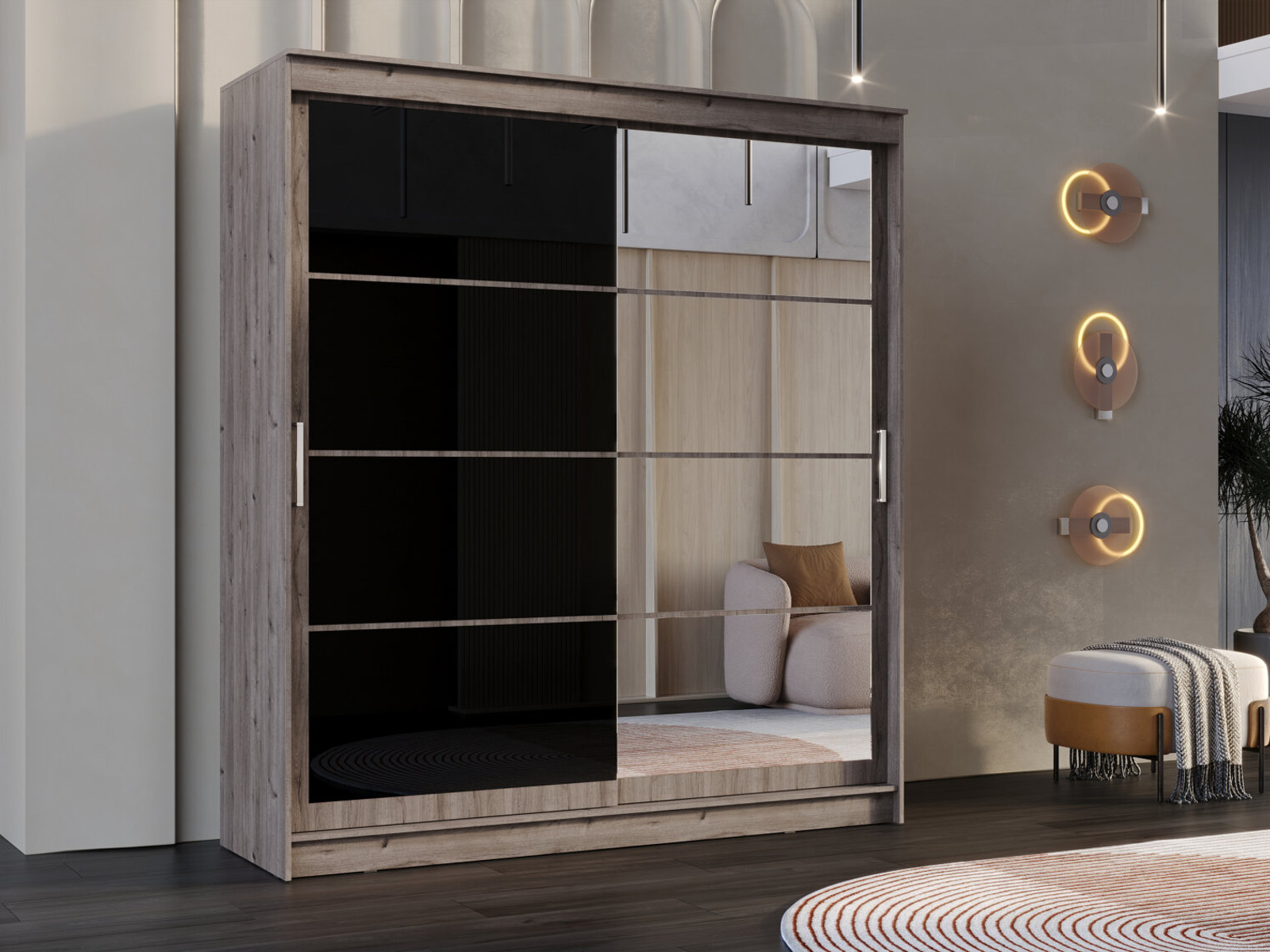Шкаф-купе Гранд-1 2000 Дуб Горный-двери Зеркало-Лакобель черный