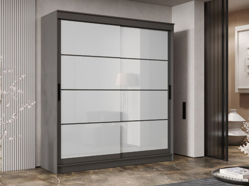 - Шкаф-купе Гранд-1 2000 Графит-двери Лакобель белый
