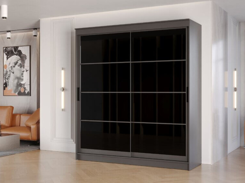 - Шкаф-купе Гранд-1 2000 Графит-двери Лакобель черный
