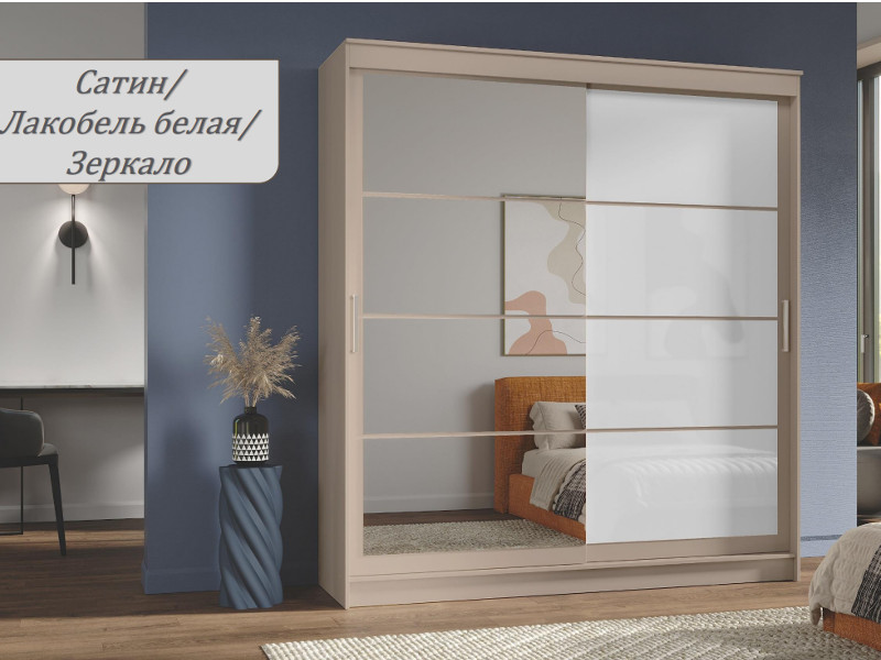 - Шкаф-купе Гранд-1 2000 Сатин-двери Зеркало-Лакобель белый