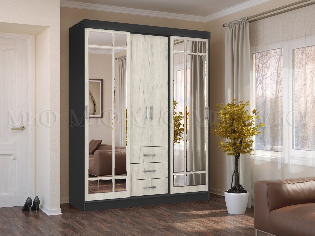 - Шкаф-купе Маэстро Дуб Крафт Белый, Графит