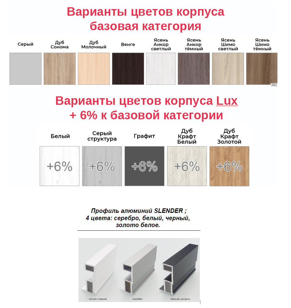 Профиль алюминий SLENDER: 4 цвета: серебро, белый, черный, золото белое.