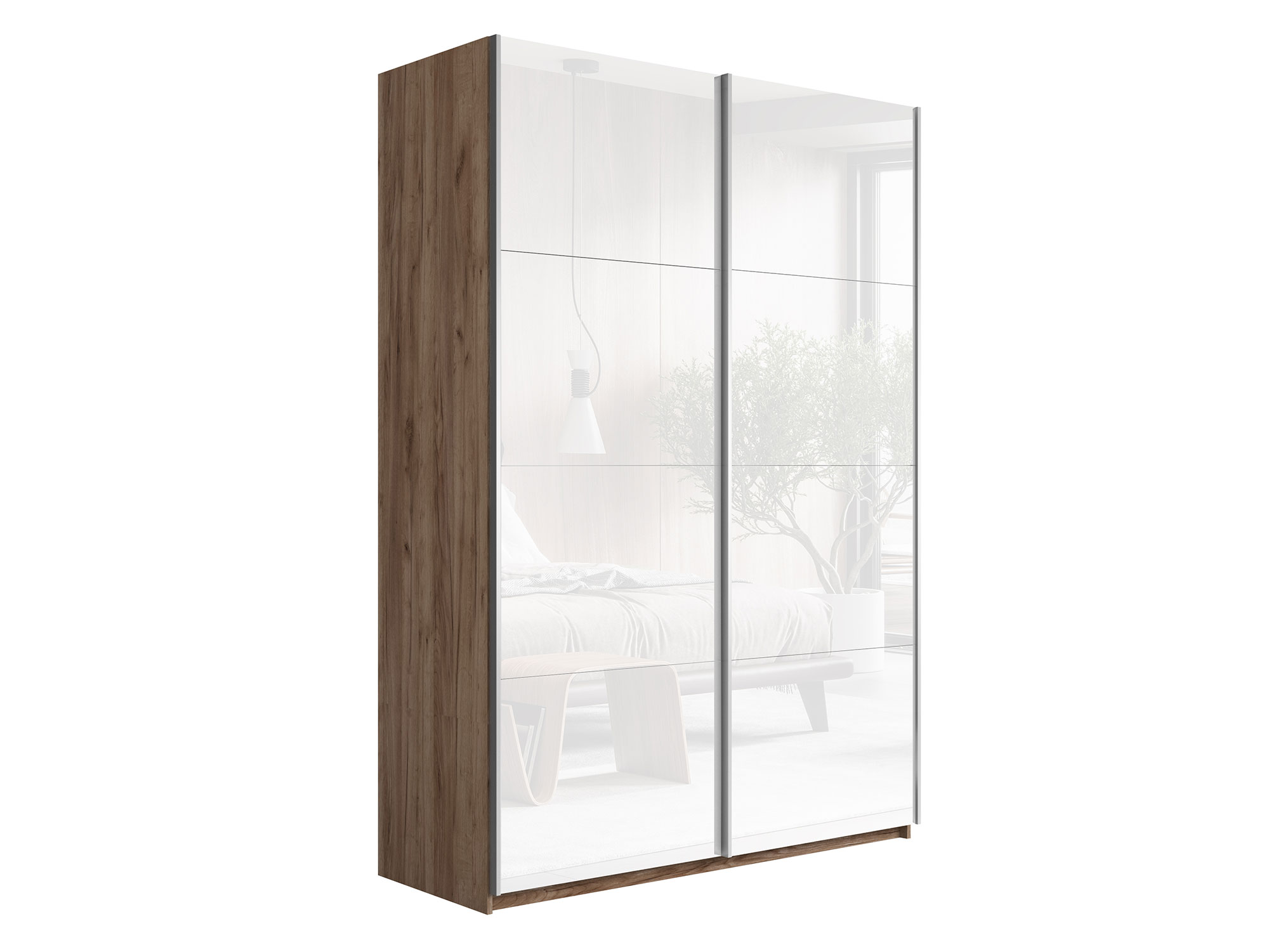 - Шкаф-купе Прайм 2-х дверный 1200 Стекло Белое Крафт табачный